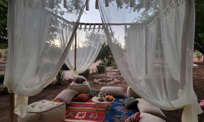 Providing a garden, Ez-zine Glam provides accommodations in El Aadamna. This property offers access to a terrace, table tennis, free private parking, and free Wifi. The garden views are a highlight at the luxury tent's pool. There is a seating area, a dining area, and a kitchen complete with a fridge, a stovetop, and kitchenware. The property has an outdoor dining area. You can play mini-golf at the luxury tent. Golf de Mogador is 11 miles from Ez-zine Glam. Essaouira Mogador Airport is 7.5 miles away.