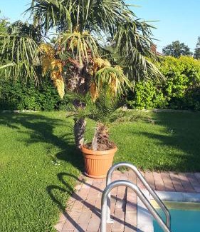 Food & DrinkTea/Coffee maker, Wine/ChampagneBathroomWalk-in shower, Private bathroom, Shower, Bathtub or shower, Toilet paper, Hairdryer, Toilet, TowelsMedia & TechnologyCable channels, Flat-screen TV, TV, Mobile hotspot device, Satellite channelsGeneralPrivate entrance, Tile/Marble floor, Trash cans, Mosquito net, Key access, Ironing facilities, Iron, Air conditioning, Hardwood or parquet floors, HeatingOutdoorsPrivate pool, Terrace, Barbecue, Outdoor dining area, Balcony, Patio, Outdoor furnitureKitchenElectric kettle, Dishwasher, Stovetop, Cleaning products, Coffee machine, Oven, Kitchen, Toaster, Microwave, Refrigerator, High chair, Dining table, Wine glasses, KitchenwareLiving AreaSitting area, Sofa, Dining areaBedroomLinens, Wardrobe or closet, Childrens' cribsViewGarden view, Pool viewAccessibilityEntire unit located on ground floor, Entire unit wheelchair accessibleBuilding CharacteristicsDetached, Private apartment in buildingRoom AmenitiesSocket near the bed, Drying rack for clothing, Non-feather pillow, Clothes rackEntertainment & Family ServicesBoard games/puzzles, Books, DVDs or music for childrenPool and SpaHeated pool |
