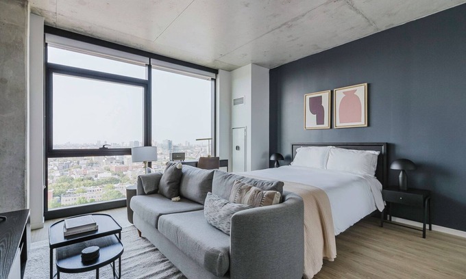 Fab West Loop Studio w/Pool, Spa, Gym, W/D & Lounge, by Blueground is located in Near West Side. Fab West Loop Studio w/Pool, Spa, Gym, W/D & Lounge, by Blueground provides accommodation, featuring Fireplace/Heating, Guest Services, Barbecue/Outdoor Cooking, among other amenities. This Apartment features Fireplace/Heating, Guest Services, Barbecue/Outdoor Cooking, to make your stay a comfortable one.