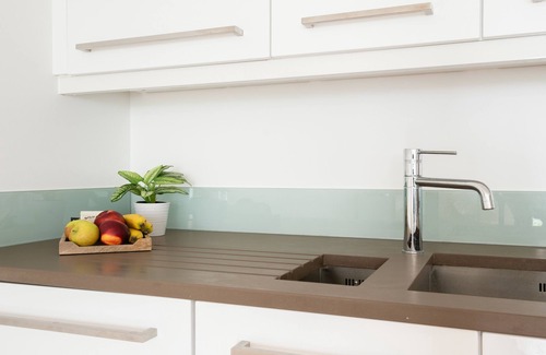 The kitchen is equipped with the essentials for dining and preparing meals. There is a generous dining area which is next to the spacious lounge area with plenty of space to relax and catch up at the end of a busy day or watch your favourite programs on the smart TV. There is also a balcony to sit out and enjoy your breakfast or an aperitif.