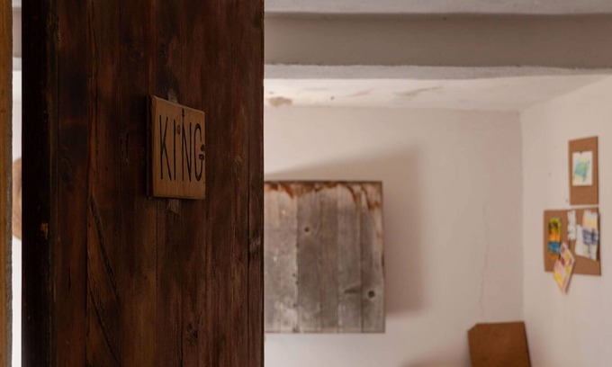 The master bedroom has a king size bed made from upcycled pallets and a work desk, along with a wardrobe built from a wooden log frame. There is a front window from which you can see the take off point on La Fortuna's main surf break, allowing you to actually check the surf conditions from the comfort of your own bedroom.
