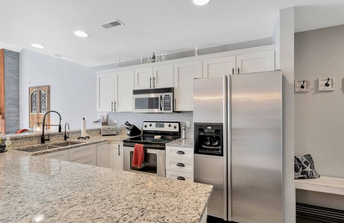 There is plenty of area for your group to spread out with a main living room, loft living room and game area. The dining area can seat up to 13. Watch the sunrise and boats from the private balcony. Enjoy grilling dinner outside on the gas grill and with seating for eight.