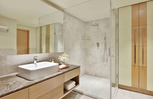 Recreational amenities at the hotel include an outdoor pool and a 24-hour health club.