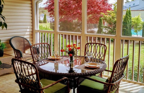 All the Tara II condominiums offer a maximum of space close to our outdoor pool. The screened-in porch invites to lounge around and for outdoor dining. The master bedroom with king bed is open to a spacious bathroom with Jacuzzi tub and separate large shower. The guest bedroom features two queen beds and has its own bathroom. The fully equipped kitchen with breakfast bar is open to the living room with dining nook, pull-out sofa and fireplace. The additional half bath offers comfort especially when the unit is used at its fullest capacity.