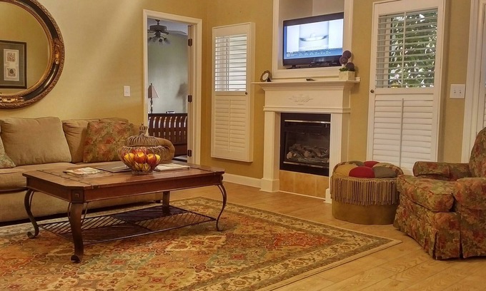 2500 acres community with plenty of green space and Treasure Lake being the focal point we offer 50condos and cottages accommodating up to 8 guests each, 3 outdoor pools and beach, 18 hole championship golf course with Country Club, Dockside Marina Restaurant and Bar, hiking and biking trails andplayground, Our luxury accommodations with Southern charm feature spacious studios, one and two bedroom condominiums and cottages with loft. All units have fully equipped kitchen, screened in porch, washer and dryer, electric fireplace (except in studios) and TV’s in all rooms. Fairfield Plantation offers all the comforts of home with the seclusion and relaxation you expect when on vacation.