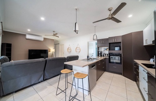 Welcome to our stylish home in Fairfield Waters, Townsville. The open plan living, dining and kitchen are perfect for entertaining, with modern appliances and ample storage space. The bedrooms are comfortable with quality bedding and storage, and the master bedroom has an ensuite bathroom. Enjoy the outdoor patio and fenced backyard. Conveniently located close to the University, Barracks, Hospital and a short drive to the city centre. Enjoy the perfect balance of peace and comfort.