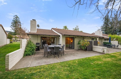 One of the best features of this stunning condo is the outdoor seating area, complete with a fire pit table that is perfect for evening relaxation or a glass of wine at night. The fire pit is an excellent feature for cold winters and chilly evenings! Imagine lounging al fresco with a glass of chardonnay from wineries like Jessup Cellars, Chateau Montelena Winery or Artesa Vineyards while watching the stars and the quiet green opposite the back patio.