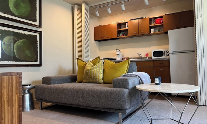 Private entrance in historic mid-century modern building. Easy access to downtown Dallas business district and booming North Dallas corridor. This is the perfect spot if you are looking for quiet, luxury living for an extended stay. Price reduced for limited time from 102.00 to 59.00 nightly, all utilities included