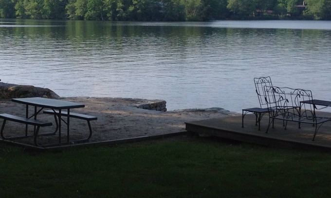 Just 1 3/4 hours from New York 2 hrs. from Boston! This is an exceptional waterfront location, step into the crystal clear lake for swimming, and floating! 2 kayaks, 2 stand up paddle boards, and canoe, fishing, snorkel, sunbathe! Bring your boat or jet ski's for boating, fishing and recreation fun. Huge wrap around porch for family BBQ or catered fine dining. Large yard for family fun, volley ball and campfires at night