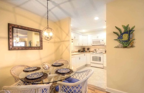 This 1 bedroom, 1 bathroom unit which sleeps 4, utilizing the sofa bed. It has a renovated kitchen and bathroom that are sparkling clean and wonderfully functional. The Pergo floors are beautiful and easy to keep clean. The new furniture is comfortable and attractive. This condominium is perfect for a family of four or a couple looking for a great getaway. Pet fee is $65 for one dog and $95 for two dogs. Small breeds only.