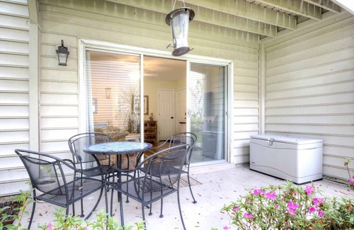 From your private patio, you have a beautiful view of the surrounding landscape including crepe myrtle trees and majestic oaks. The unit has WIFI, along with Comcast cable. All facilities are nearby: the pool, clubhouse and the tennis courts and laundry. The condo does not include it's own washer and dryer, but there is a large coin-operated laundry center in the clubhouse.