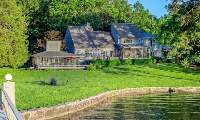 Come visit Blue Heron Lake Lodge and soak up the sunshine! Swim, fish, boat, and relax by the fire pit or on one of the many outdoor seating areas. There is no better place for a lake view sunset than at this expansive lake house. You will leave feeling renewed and restored after a vacation here where you feel remote yet are convenient to everything in West Knoxville.