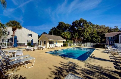 The Tee Box owners love golf and love the island and you will too! Our condo is fully stocked with all stainless appliances, updated finishes in kitchen and baths. The condo sleeps four with a king bed in master and queen bed in the second bedroom. Two full baths, wide open living room/kitchen and dining area. Views of the duck pond are available from every room. Enjoy a nightly breeze from the covered deck! Beaches are less than a mile away as are some of the island's best restaurants, bars and best of all--live music almost every weekend! Appliances include: Washer/Dryer Stove/Microwave Dishwasher Toaster Oven Coffee maker and Keurig, Cooking utensils, pots and pans, dishes Linens/towels Iron/Ironing Board, small hair dryer, Ceiling fans and keypad access so no worries with losing keys and easy late check-in. Free WIFI but enjoy the weather, leave the office at home! Note we do not have cable, WIFI ONLY! Access to all complex amenities, even a fitness center and business center. Picnic and grilling areas near pools and pond. Let us help you with golf cart rental or bike rental locations! Let us help you with golf course suggestions! Condo is a second floor unit, sorry no elevator, but all rooms are on one level.