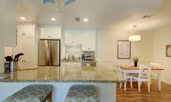 We are less than a mile from the village where you can get the best Bloody Marys and seafood on the island. Grab a bike or walk to excellent restaurants like Half Shell, Palmer's, Palm Coast, Georgia Sea Grill, Mullet Bay, Sand Castle and more! Stroll along the paths near the St. Simon's lighthouse and Pier parks and see the abundant wildlife, all within walking distance. The closest beach is less than a mile away at the King & Prince but there are several beaches to choose from, and Georgia's crown, jewel Jekyll Island, is a short drive and a must see for all travelers.
