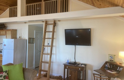 Living room with 42' flat screen TV, dining room, bathroom and kitchen, two with queen beds and a third with a full size bed, and a loft with two twin-sized beds. separate 15 x 12 pergola with slate flooring, adirondacks, fireplace and dining seating for four. The pier can handle motorboats, canoes, or rowboats. Four kayaks are available. Linens and paperware provided along with all kitchen equipment and dining ware.