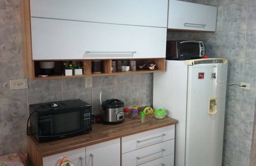 Apartment with 85 m2, large living room 2 environments, 2 bedrooms, kitchen, service area, 1 bathroom, half a block from Aparecida beach. The apartment can accommodate up to 7 people, with full kitchen, microwave, refrigerator, stove / oven, electric cooker and other kitchen utensils.