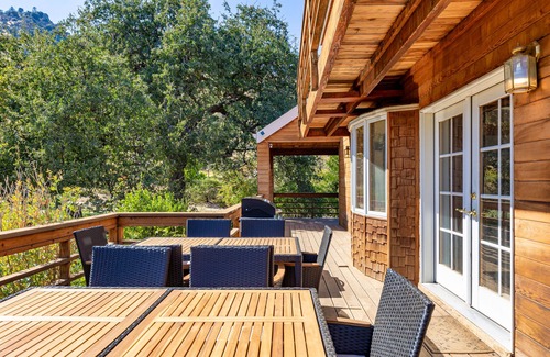Welcome to the Tehachapi Cabin as seen on HGTV ! This professionally interior-designed cabin is surrounded by 18 acres in the Tehachapi Mountains. This private retreat is great for families, family reunions, retreats, and larger groups. The cabin has large wrap-around porches with outdoor dining options overlooking the gardens. The second story also has a balcony off the master bedroom to enjoy your morning coffee while watching the deer walk by. The toilets have heated seats & bidets.