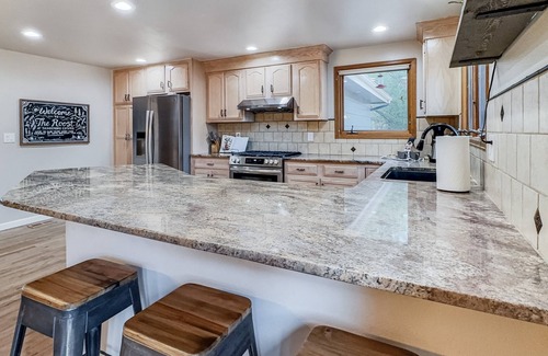 Surrounded by stunning Pikes Peak views, this spacious 6-bedroom home offers relaxation and adventure. Stay active in the private fitness studio, unwind in multiple entertainment spaces, or gather around the outdoor fire pit. With 2 king beds, 2 full beds, 2 queen beds, and even a crib, this property is perfect for families or friends. Central to trails, backing up to the Air Force Academy, and near to many CO attractions, this peaceful escape is perfect for families, groups, or a quiet getaway. Experience Colorado Springs like a local!