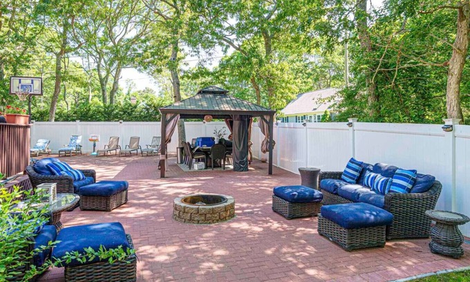 Step into our spacious outdoor oasis! Our fully fenced backyard provides privacy and security for your relaxation. Enjoy meals on the patio with ample outdoor seating and dining space. Gather around the fire pit under the stars for cozy evenings. Rinse off after a beach day in our refreshing outdoor shower. Lounge in the hammocks, listen to the sounds of nature or watch the kids play in the designated play area. Our outdoor space offers something for everyone to enjoy during your stay on Cape Cod.