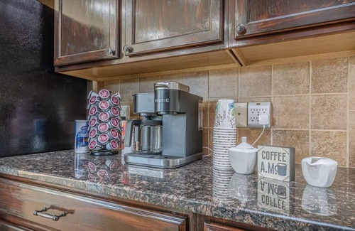 Guests will enter through the front door using a digital keypad. The dining room is to the left of the entryway, and the game/pool table space is to the right. Through the main foyer are the living room and the fully equipped kitchen. The first and only ground-level bedroom is off the kitchen with a queen bed, and so is the half bathroom.