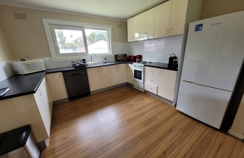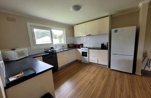 Great house for any season with bright open plan living/dining/kitchen. Well equipped kitchen has fridge, oven, microwave, sandwich maker, electric frypan, pod-compatible coffee machine plus dishwasher to make for happy chefs! Separate laundry with washing machine. TV and DVD players provided in both lounge and kids bedroom. Reverse cycle air conditioner provides heating and cooling.