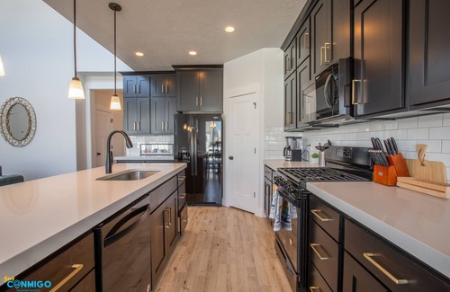 This very centrally located home in American Fork will have everything your family needs from comfort to convenience. The property is within 2 miles of major shopping centers with many dining options as well. Enjoy a fully stocked beautiful kitchen, and an open layout for family gatherings. There is an additional kitchen and living room/game room in the basement which is perfect for larger groups. The outdoor area with a covered patio dining space and hot tub is a perfect place to relax and unwind.