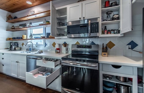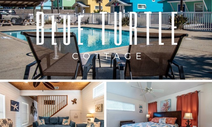 Step into the charm of the Blue Turtle Cottage, a cozy beach-style retreat that radiates warmth and fun from the moment you arrive. The vibrant blue exterior and striking magenta front door set the tone for a cheerful and inviting stay. Inside, you’ll find a delightful mix of turtle and beach-themed decor designed to make you feel relaxed and right at home.