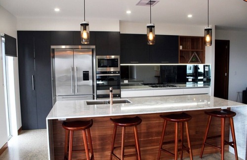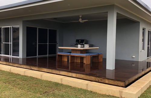 Only 5km to the town centre, 1km to the beach and 5 min to the airport, the serenity of rural living can be soaked up from the front deck each evening, from big, open-plan living areas that open out onto the BBQ area.
