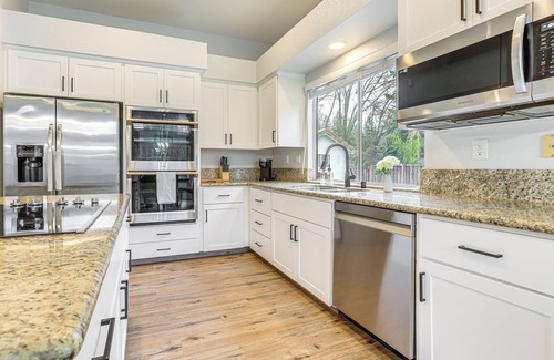Endless lake days await with this El Dorado Hills vacation rental as your home base! Ideal for sun-seeking families and boating enthusiasts, this 4-bedroom, 2-bath house offers a great location with easy access to Folsom Lake adventures. After a day spent on the water or on nearby hiking trails, you can relax on the patio, unwind with a refreshing swim, and cozy up inside to stream your favorite movies!