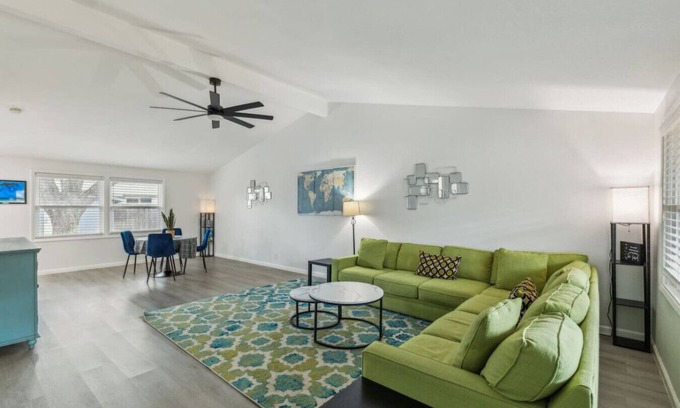 : This vibrant home has 3 bedrooms and 2 bathrooms. All bedrooms are on the ground level for ease of access. You will have everything you need in this thoughtfully decorated space. Kitchen has all appliances and cooking requirements - dine inside or out! W/D in unit. Relax on the outdoor patio - perfect for gatherings!