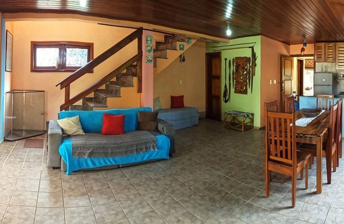 The beach house has 3 bedrooms, one suite with sea view, 3 bathrooms, living room, kitchen, barbecue, service area, front and back porch; only 20 mt from a great stretch of beautiful beach waiting for you.