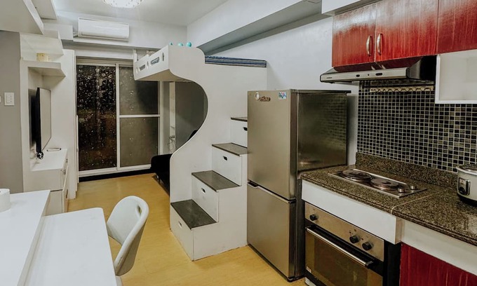 Located in Manila, enjoy what this 1-bedroom condo has to offer. This enchanting property features a cozy living room with a bunk bed and futon, perfect for unwinding after a day of exploring. Guests can take advantage of amenities like AC, WiFi, and a fitness room. Our place is equipped for both long or short stays to make your holiday one to remember.
