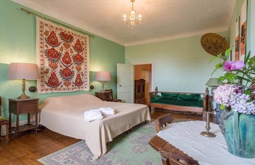 - A large bedroom with 180 cm bed and an Empire style sofa