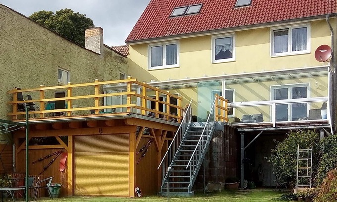 With us you will find your apartment with winter garden and lake view for a dream vacation! The apartment has a bedroom with 2 beds and a high bed. In the living room a couch with sleep function for 2 persons (2,05m x 1,80m) and a couch are available. Also a large TV is available. The functional kitchen is fully equipped with plenty of crockery and cutlery, a gas stove with oven and 4 hobs, fridge / freezer, microwave and dishwasher. a dining table with seating for 5 is located in the kitchen. The bathroom is equipped with toilet, sink and bathtub with shower wall. The apartment has a conservatory and a terrace with sun loungers and barbecue area. Going through the garden, you arrive at the Stadtsee. There are a rowing and a paddle boat, which can be used for a small fee or you just go swimming, sits down to the water and relaxes.