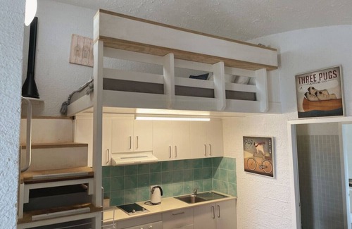 Note: This property does NOT have 2 separate bedrooms. It has 1 bedroom, with the second bed being accessed by stairs to a loft bed above the kitchen.