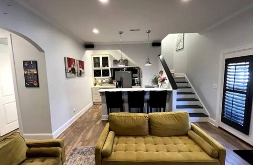 Just 10 minutes to Downtown Raleigh (DTR), 25 to the airport (RDU) and 5 min from Lake Benson and charming Downtown Garner, we hope our renovated basement can be your home-away-from-home! Totally private. Queen bed, full bath, living area and kitchen w/ high-end built-ins, great water pressure, tall ceilings and doors, closet built-ins, grill, even a private exit/entrance (you must be able to walk up/down a small grassy hill). All are welcome; LGBTQ+ friendly