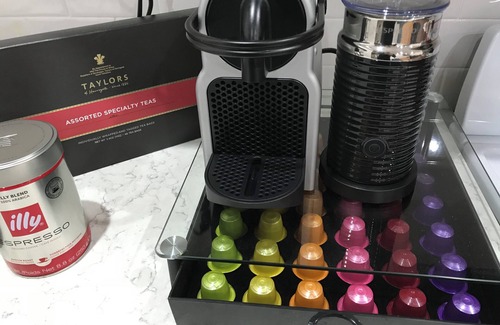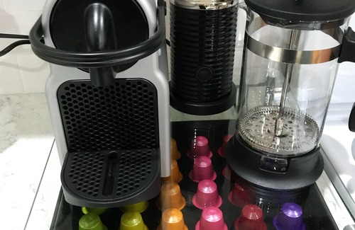 -Lots of options for however you like your coffee - Nespresso machine, milk frother, and French press