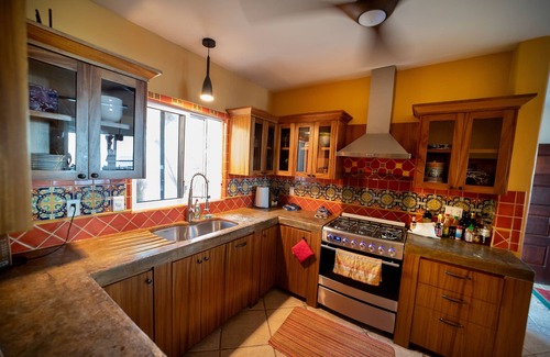 Our caretakers can also provide delicious meals on site for reasonable prices. Imagine breakfast & dinner with home made salsas, tortillas, rellenos, enchiladas & aguafrescas prepared for you as often as you wish. Mexican & El Salvadorean food are on the menu with lots of fresh fruit & vegetables.