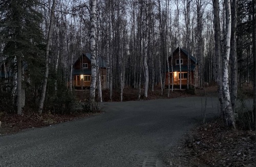 Located in Willow, nestled in the birch and spruce, our cabins offers a convenient place to stay for Alaskan trips. The entire upstairs houses the bedroom which features a queen bed and a twin bed. With a TOYO heater to keep you warm and two cozy loveseats to relax in you will find a relaxing place to come home and unwind after your adventures.