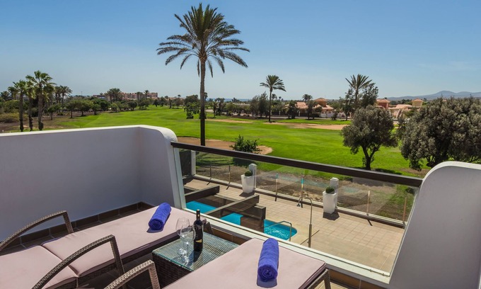 Villa Palmers (Casa Palmers) overlooks the 16th Green of Fuerteventura Golf Course - This Championship Golf Course hosted the Spanish Open in 2004. The Villa has fantastic views down the fairway and from the roof terrace superb ocean views can be taken in.