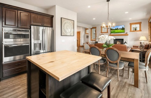From the moment you walk in the door you’ll feel right at home in this luxurious four bedroom townhome. The main living area boasts a fully stocked granite kitchen with stainless appliances and a gas cooktop. The dining table expands to seat 8 comfortably with an additional 2 at the kitchen bar. The comfortable couches and chairs offer a relaxing spot to watch your favorite show or just warm up around the cozy gas fireplace.