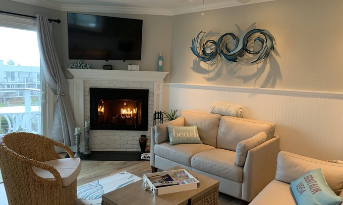 This property is open year-round, the unit is cozy and warm in the colder months with adjustable baseboard and unit heating and working fireplace ("duraflame" type logs only, please.)