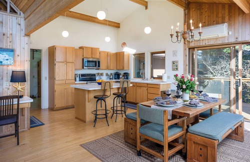 Experience incredible waterfront views and privacy at our end-of-the-road estate! 🌊 Nestled on the edge of Historic Sea Acres and just a few miles from Doe Bay Resort, our comfortable home features a spacious, well-stocked kitchen and an open floor plan. Wake up to stunning sunrises while lounging on the expansive deck. Family and pet-friendly, we have a fenced yard and two play areas for the kids. Both the master and guest bedrooms are ensuite, and the kid's room has its own full bath! 🦅✨