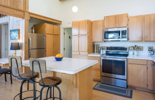 Super clean and well-stocked, this island gem is ideal for summer fun or winter excursions! Our fireplace keeps you toasty warm after kayaking or while enjoying a good book on our comfy seating.