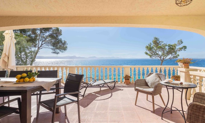This fantastic villa is located in the residential area of Aucanada, a very quiet coastal area near Alcúdia. This magnificent accommodation retains the classic charm but with modern touches. It is fully equipped and has everything you need to spend a wonderful holiday by the sea. It is also very bright and spacious because it is ready to accommodate 12 people. But without a doubt the most impressive aspect of this property is the exterior, as it offers spectacular views of the bay of Alcúdia. In addition, it has several furnished terraces from which to relax and enjoy the magnificent climate of Mallorca and a direct exit to a small cove of rock.