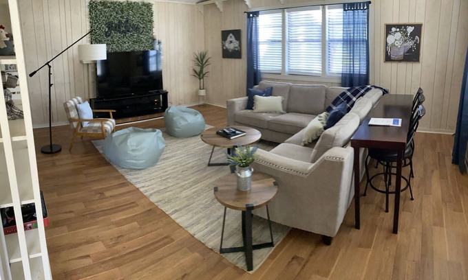 Located directly off the Coastal Hwy, this gorgeous 4 acre property is 2 miles from Lower Wakulla River boat ramp and close to several secluded beaches. The house was designed specifically for Airbnb...6 beds, large living room, and huge screened in patio with a grill. There’s a fire pit located in the gazebo, 8 free bikes (bike trail connects to house), or even hang out with the chickens. Its decorated by my wife and cleaned by the both of us!