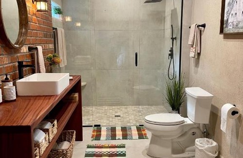 Food & DrinkTea/Coffee maker, FruitBathroomShower, Hairdryer, Free toiletries, Toilet, Private Bathroom, Bathtub or shower, Guest bathroom, Towels, Toilet paper, Walk-in shower, Shampoo, Conditioner, Body soapMedia & TechnologyTV, Flat-screen TV, Streaming service (like Netflix)GeneralAir conditioning, Iron, Fan, Heating, Interconnecting room(s) available, Private entrance, Tile/Marble floor, Trash cans, Smoke Alarm, Fire extinguisher, Carbon monoxide detectorKitchenRefrigerator, Microwave, Dishwasher, Kitchen, Kitchenware, Oven, Stovetop, Toaster, Cleaning products, Coffee machine, Dining table, Wine glassesLiving AreaSitting area, Fireplace, Sofa, Dining areaOutdoorsPatio, Terrace, Outdoor furniture, Outdoor dining areaBedroomWalk-in closet, Wardrobe or closet, Linens, Childrens' cribsViewView, Garden viewActivitiesSaunaAccessibilityEntire unit located on ground floor, Toilet with grab railsRoom AmenitiesClothes rack, Fold-up bed, Drying rack for clothing, Adapter, Non-feather pillowPhysical distancingSingle-room AC for guest accommodationCleanliness & disinfectionHand sanitizer |