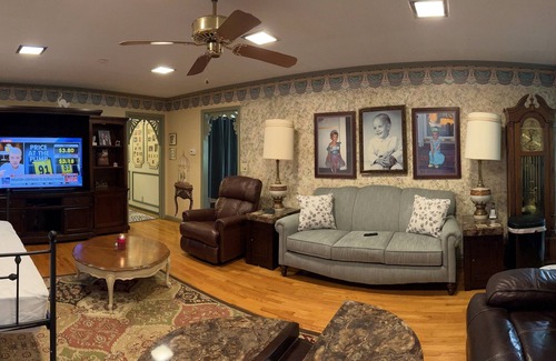 The family room has a 60" HDTV that is 3-D capable with the 3-D glasses if our Guests can find streaming 3-D programming. Sound is through a 5.1 surround system. The TV has a Roku device and is connected to the Internet with our DSL, 25 mbps service. Guests' devices can connect to the service as well. In the family room are two couches, a recliner, two coffee tables and a Daybed so that all Guests can gather and enjoy streaming entertainment together.