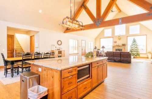 Large farm house with more than 3700 SQ FT of open floor plan and 20 FT high ceiling with floor to ceiling windows to enjoy the natural views. Large sectional/recline-able sofa and dinning table to accommodate a large group. 5 bedrooms and 4 full baths with 10 beds that sleeps up to 16 people comfortably. Large open kitchen with all modern appliances to host a nice group dinner. 3 adjacent parking garage with EV chargers on-site.