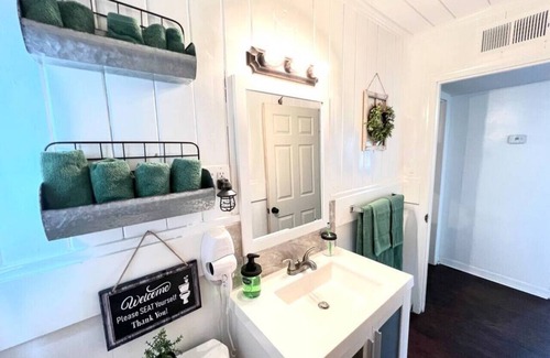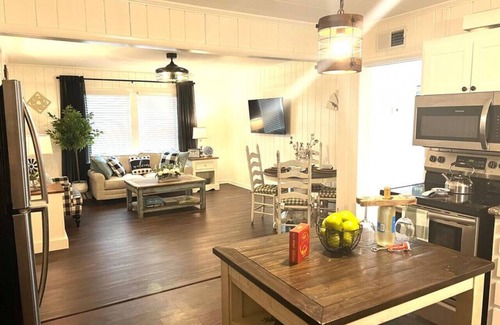 Southern hospitality at its best! This unique place has a style all its own. One of four beautifully decorated condos in historic, downtown Abbeville. Abbeville is an area of Louisiana known for delicious Cajun food, culture, and history. This unit pays armage to the farmhouse style with the traditional whitewashed furniture with accents throughout of bold contemporary colors.